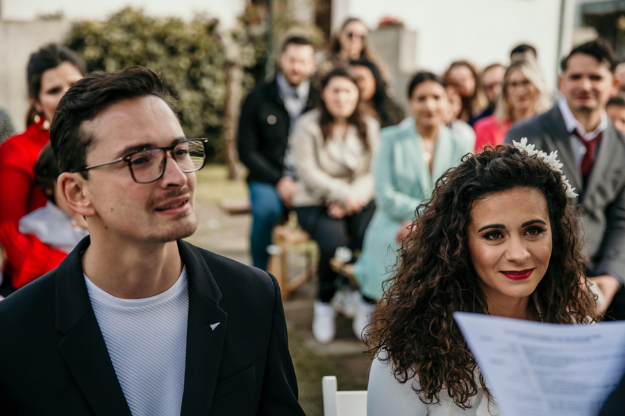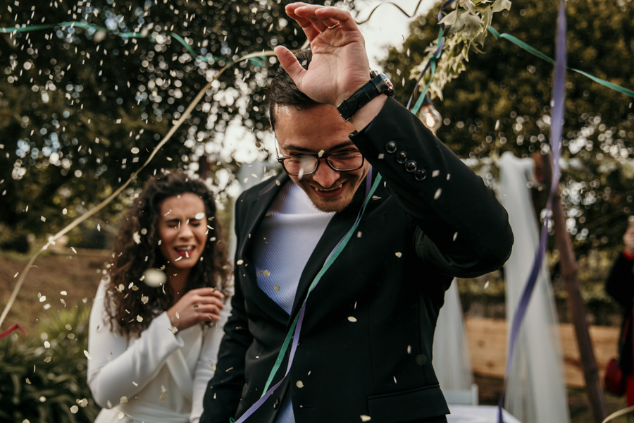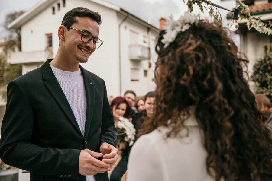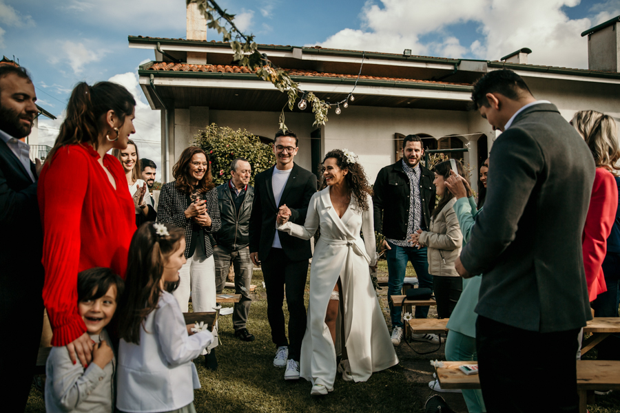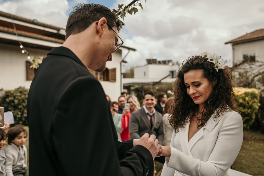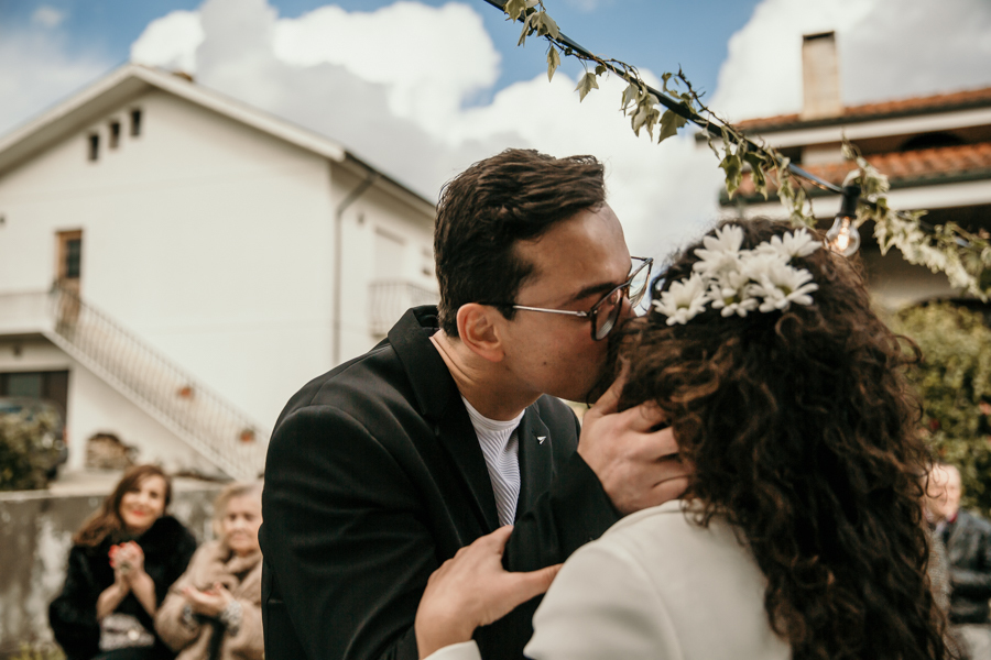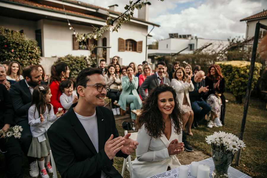 Este casamento realizou-se em casa da madrinha da noiva, em Vila Nova de Gaia, num dia bastante chuvoso - a chuva só deu tréguas precisamente na altura da cerimónia - mas não faltou emoção e alegria, misturadas com o sentimento de surpresa. Alguns dos familiares presentes foram convidados para um evento mas estavam longe de imaginar que seria o casamento da Rita e do Hilário.